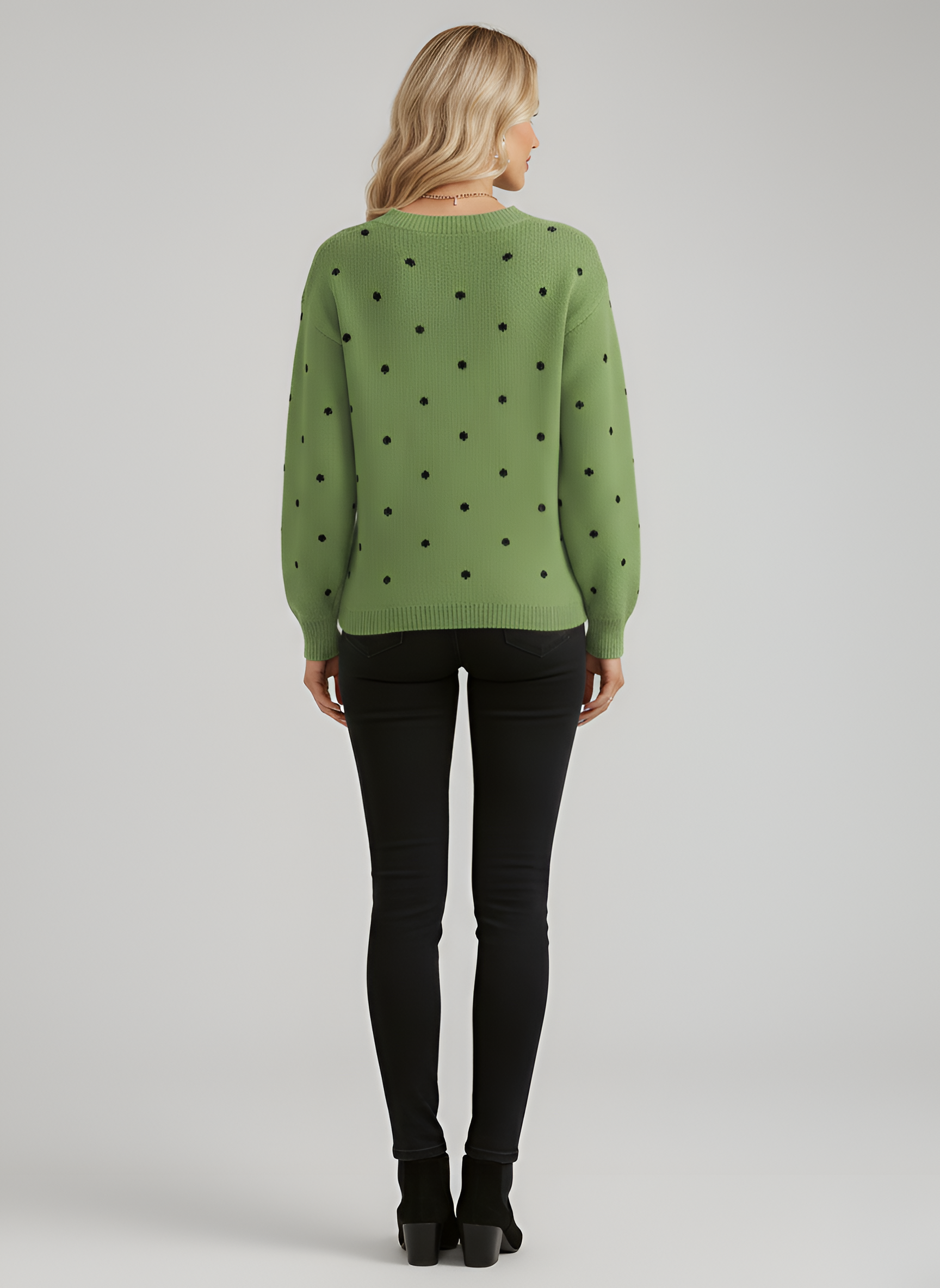 Dámsky pletený sveter so vzorom a okrúhlym výstrihom